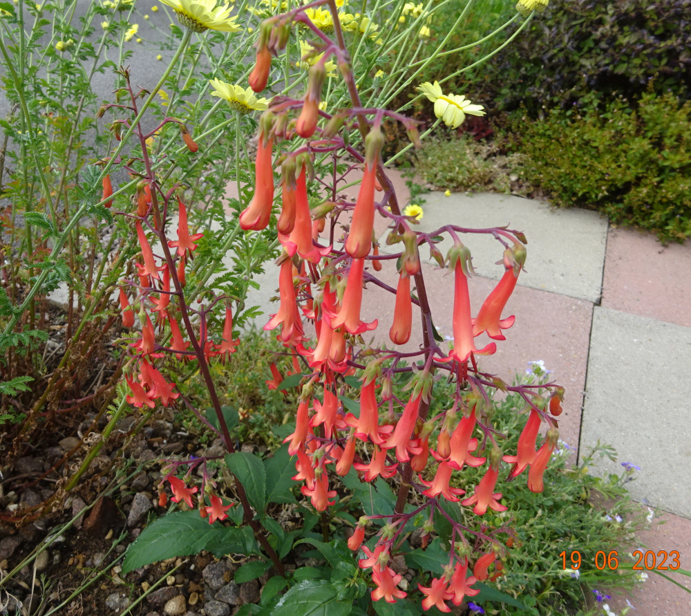 Phygelius 'Copperburst Orange'. invasive at the roots eventually, but I like the colour..