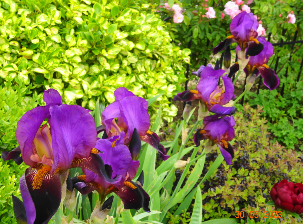 Iris 'Benton Storrington'.. one of the famous Benton's, shown at Chelsea last year.. grows quite tall so needs more shelter from wind.. snails decimate these unfortunately.