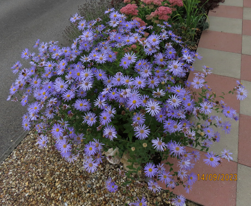 Aster 'Wunder von Stafa'.. very similar to 'Monch' but the flower colour is less uniform, and it can flop a bit, otherwise difficult to tell apart. I understand they are confused in commerce so one may get either.. sometimes I prefer this one.. Hemerocallis 'Mood Elevator'.. a repeat flowering Daylily.. .. first flush from 25th June - 5th August.. ..the a month gap, before producing another scape around 9th September.. Allium 'Mt. Everest'.. spring flowering from bulbs, huge grey leaves that soon disintegrate.. loved by bees.. strong onion-y smell.. Iris 'Benton Storrington'.. one of the famous Benton's, shown at Chelsea last year.. grows quite tall so needs more shelter from wind.. snails decimate these unfortunately. Lavender 'Ashdown Forest', short season but a nice bright colour on this.. Phlox 'Sweet Summer Lilac'.. I think my favourite colour from the ones I have.. very long flowering into October.. Spigelia marilandica .. Indian Pinks.. a bright splash of red for midsummer, quite unusual and not seen that often I think.. Clematis 'Margaret Hunt'.. this never let's me down, growing in gravel and seems to enjoy full sun..