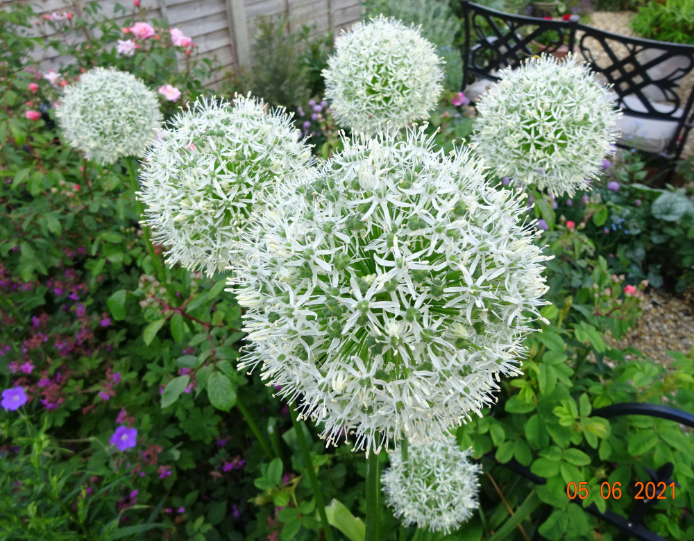 As for Allium 'Millennium'.. I think this is the Allium by which others are judged, the flower heads turn gritty grey in late Sept/October and the foliage turns yellow, then buff with a dried look. I divided mine at that time.. They're already poking through the soil..