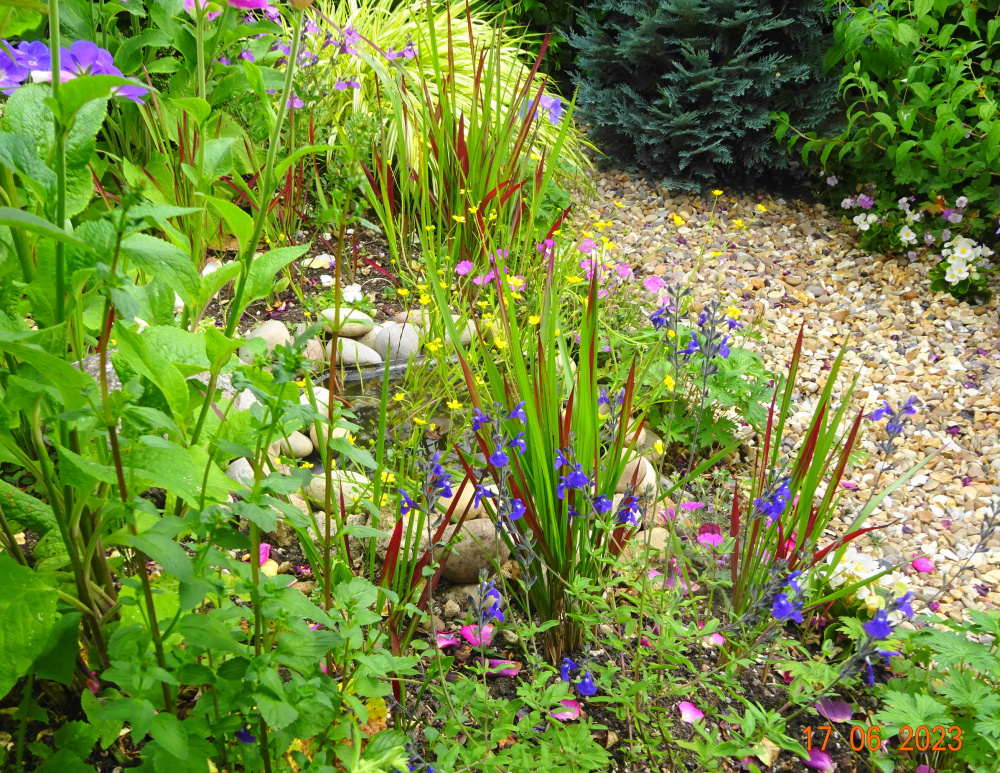 ..with the real Geranium 'Johnson's Blue'.. ..by late summer with Salvia 'Blue Merced'..
