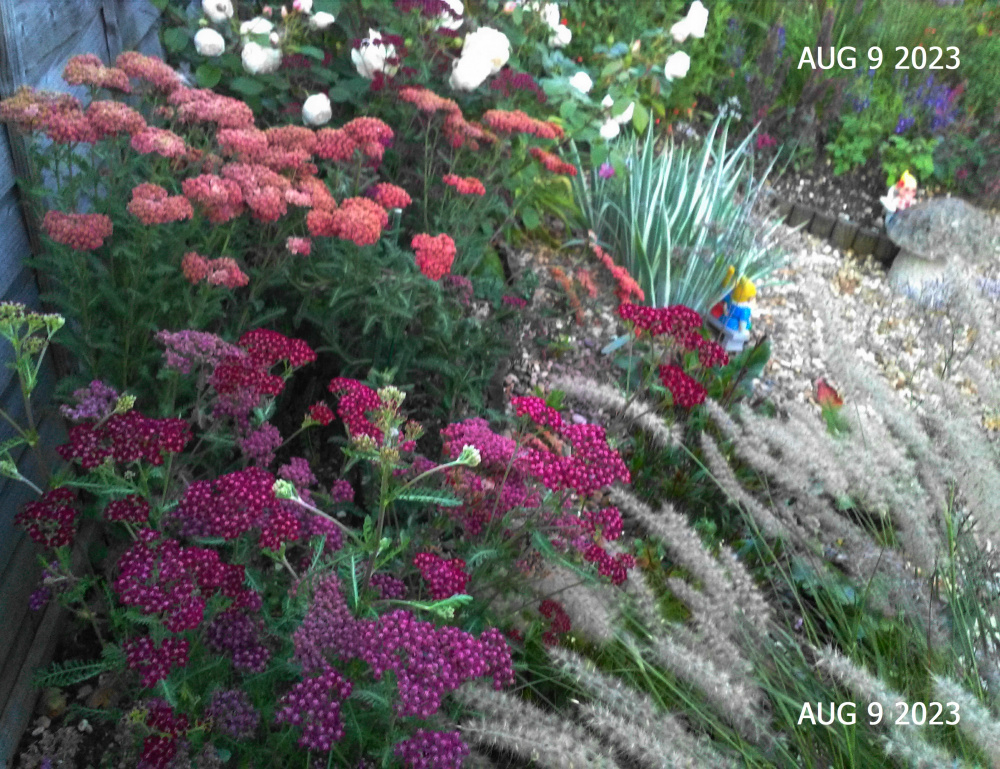 I have 3 Achilleas.. my favourite is the bottom one 'Summer Wine'. the other above it, is 'Paprika'.. I also have 'Red Velvet'.. all need staking but flower for a long period..