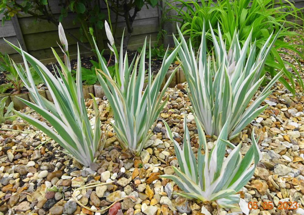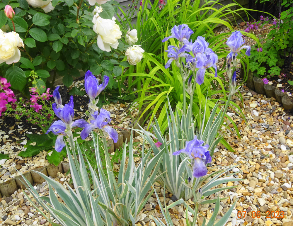 ..this first one I find to be a stunning foliage plant from May until October, when the foliage starts to turn brown.. Iris pallida 'Argentea variegated'..