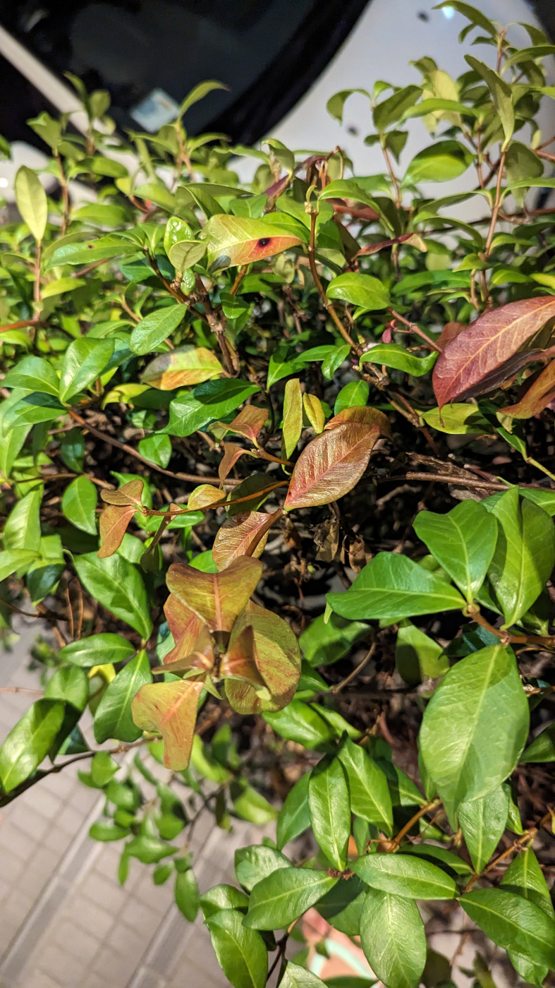 A month back one of the plants started getting brown leaves in a very small centralised area... at first I almost thought a branch must have been accidently cut so just trimmed off the dying leaves.