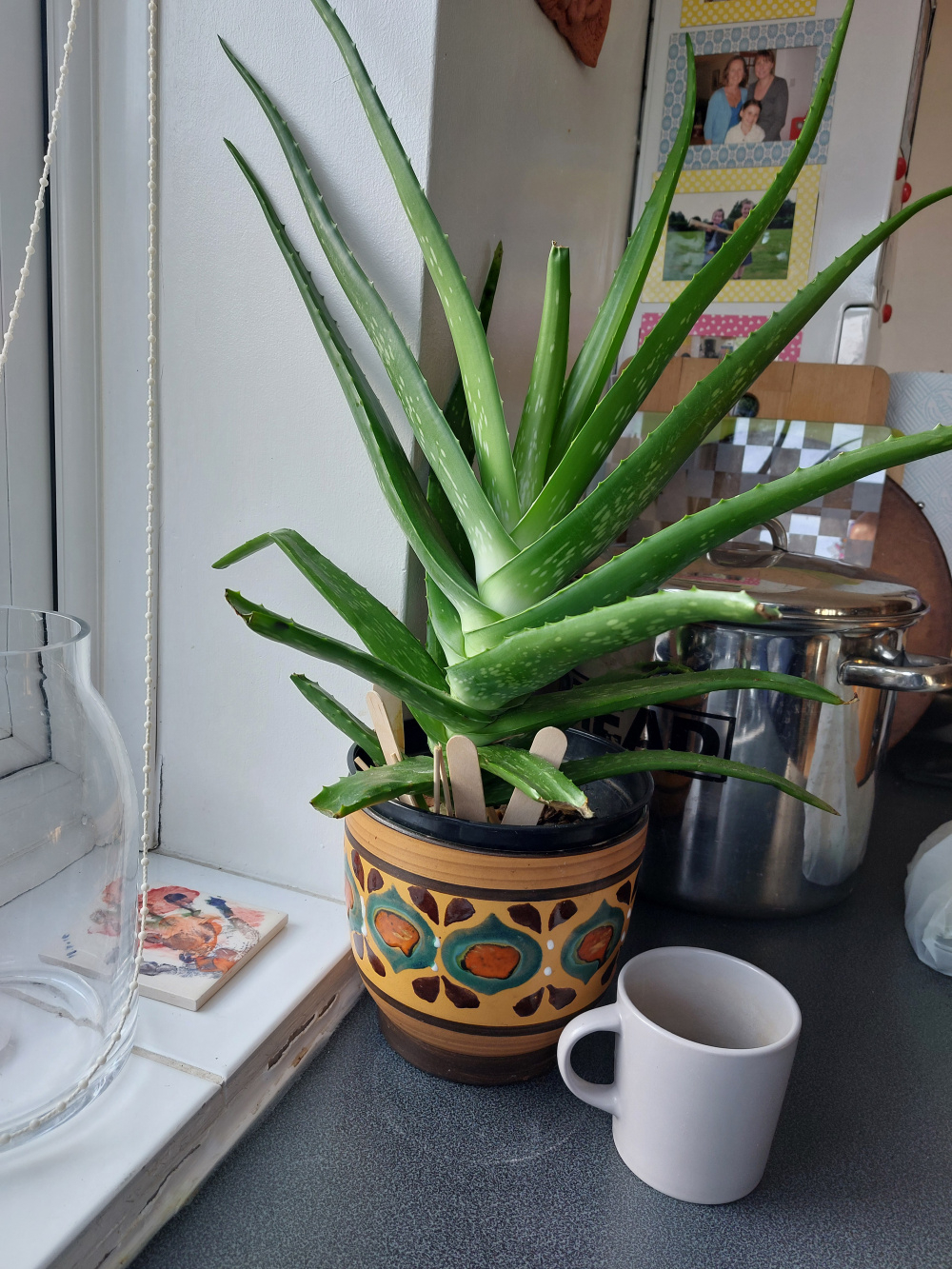 I'm trying to get some advice. I have this aloe vera plant which is getting so top heavy it is falling over. Its being propped up with sticks but I'm wondering: