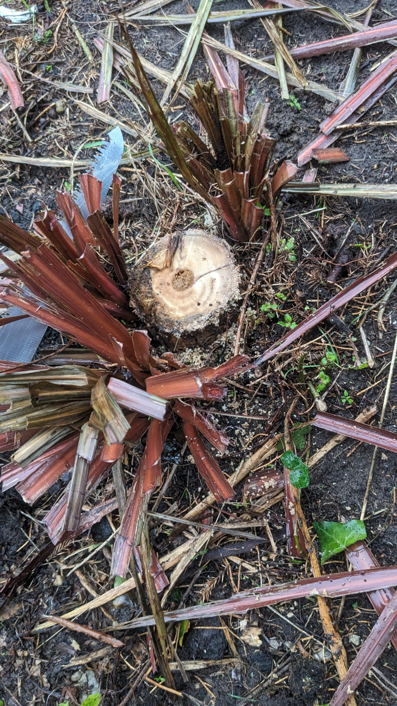 Last year I chopped down a cordyline which appeared completely dead. In fact, it was, by then, just a tall stump.