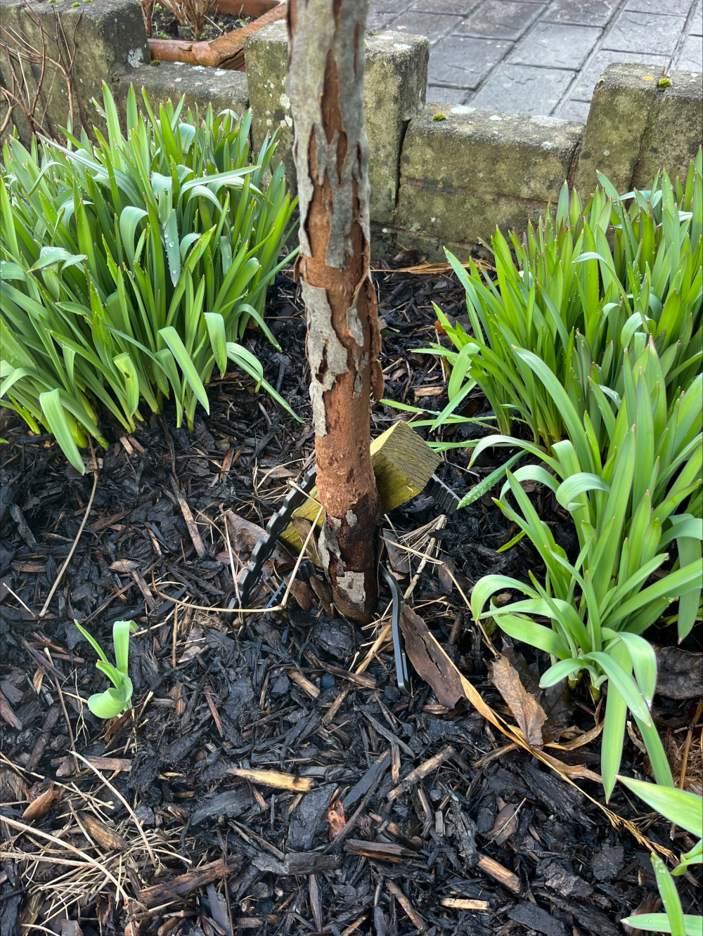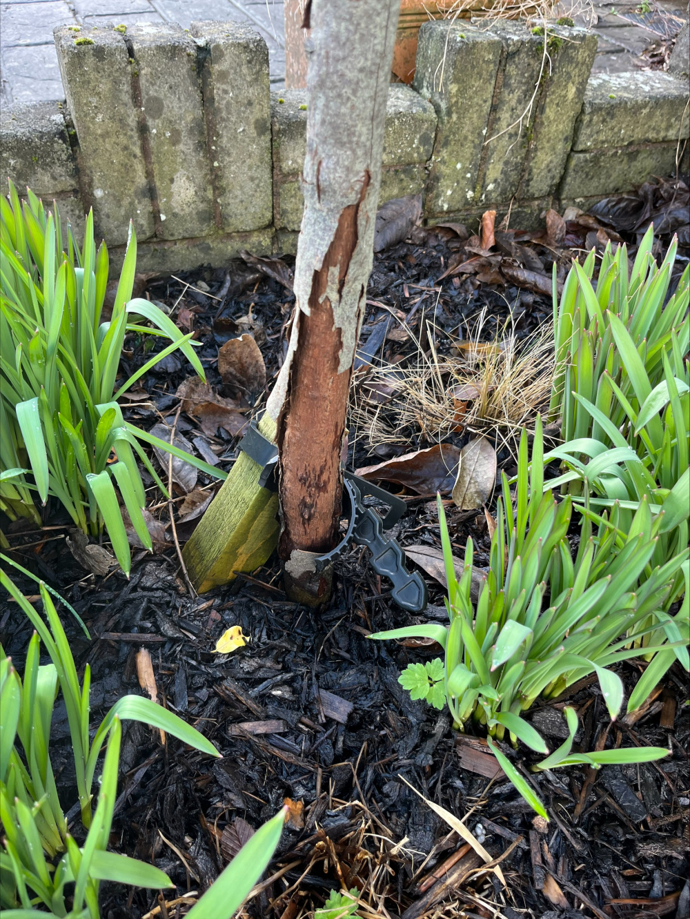 Second problem (again down to my error!) I have 3 bay lollipops in the ground. I had tree stakes and ties on these since planting (2.5 years ago). I neglected to check the ties and they were too tight. The bark split above the ties on 2 of the plants (the 3rd seems fine). The foliage is in good condition, no browning and there are leaf buds evident. I did notice last year that there was very little growth in the crowns though (but didn't think to check the ties).