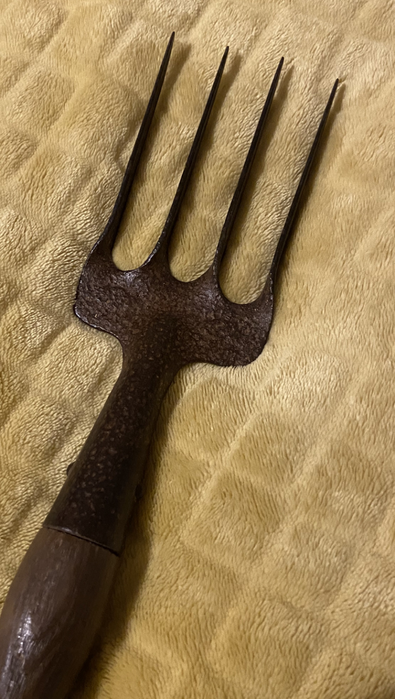 The metal work on this one below though is different in that there are 4 prongs and they’re much thinner - I’m new to gardening so it might be that it’s common and I just haven’t spotted them anywhere before but I’d like to use both forks in the garden if I can so wondered if these was actually a practical use for this one or it’s best to just hang up in the potting shed as a display item!