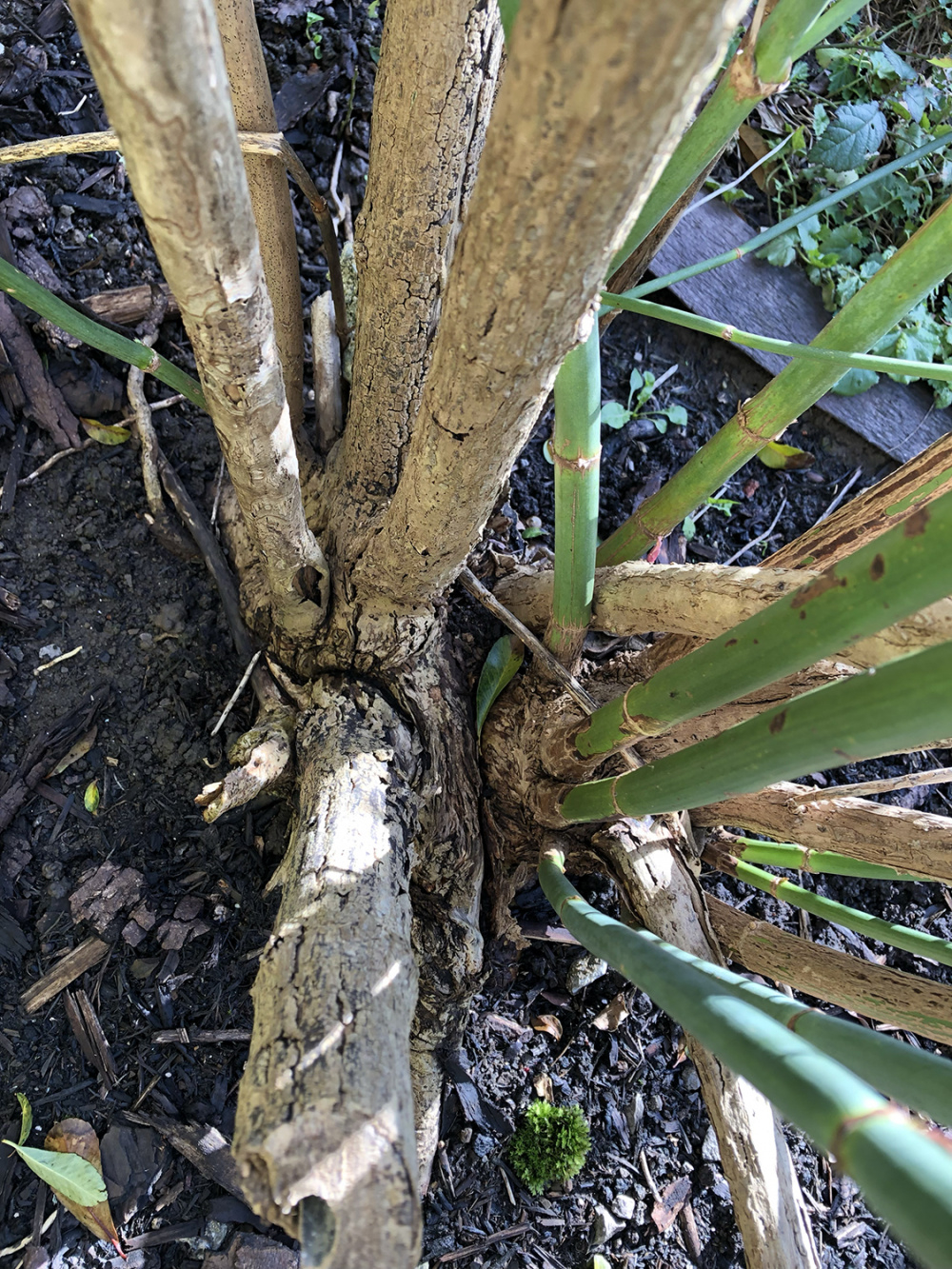 My Himalayan Honeysuckle is not looking good. For a few years it was badly pruned. Now I noticed mould/rot looking like things at the base and a couple of older branches.