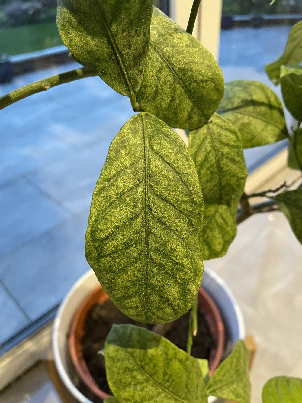 The leaves on my indoor lemon have started mottling (not yellowing) and developing ridges - some are starting to curl (see pictures attached).