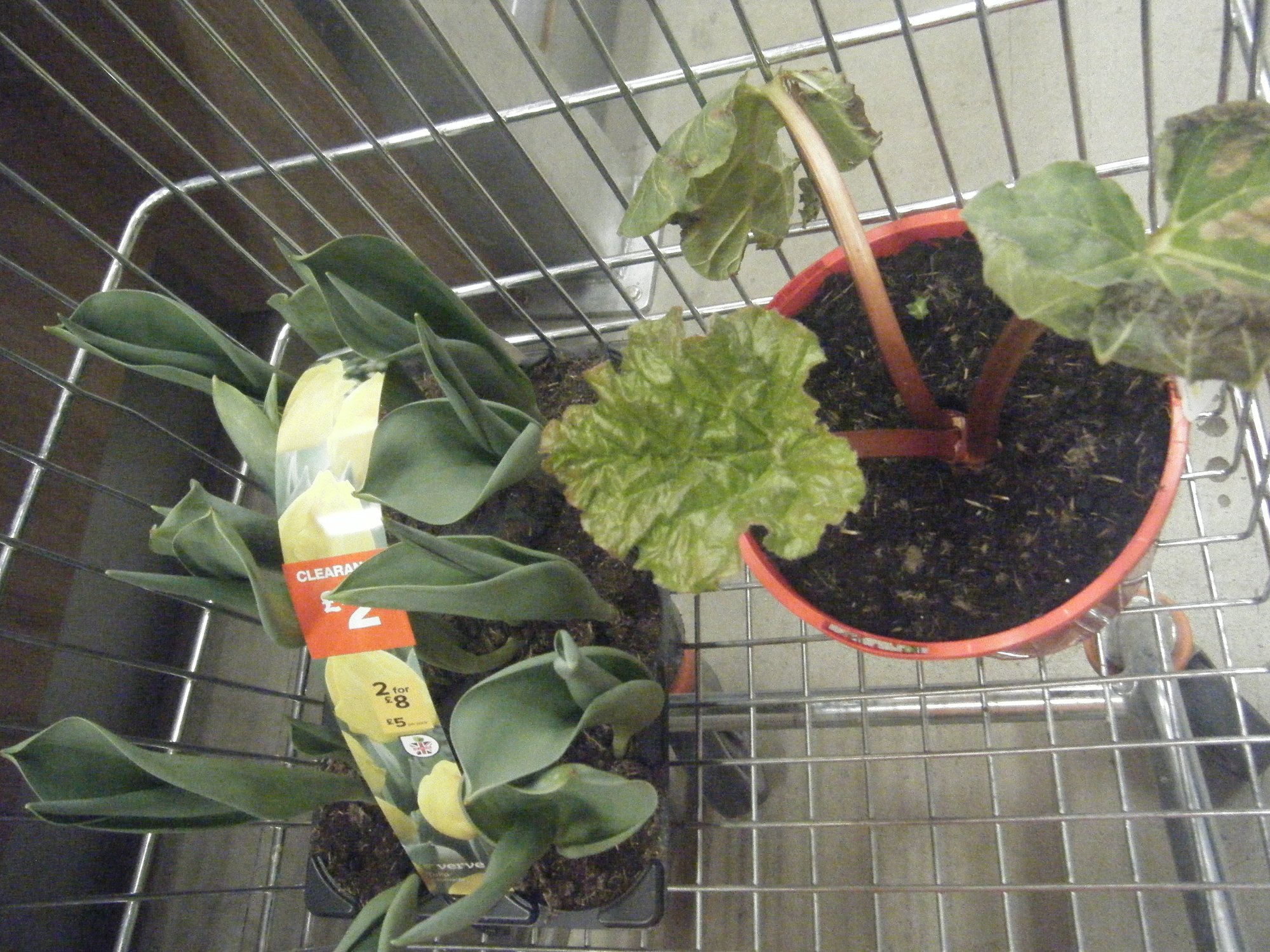 Biofreak Here are my bargains £2 yellow tulips and £2 Rhubarb, also got grass seed