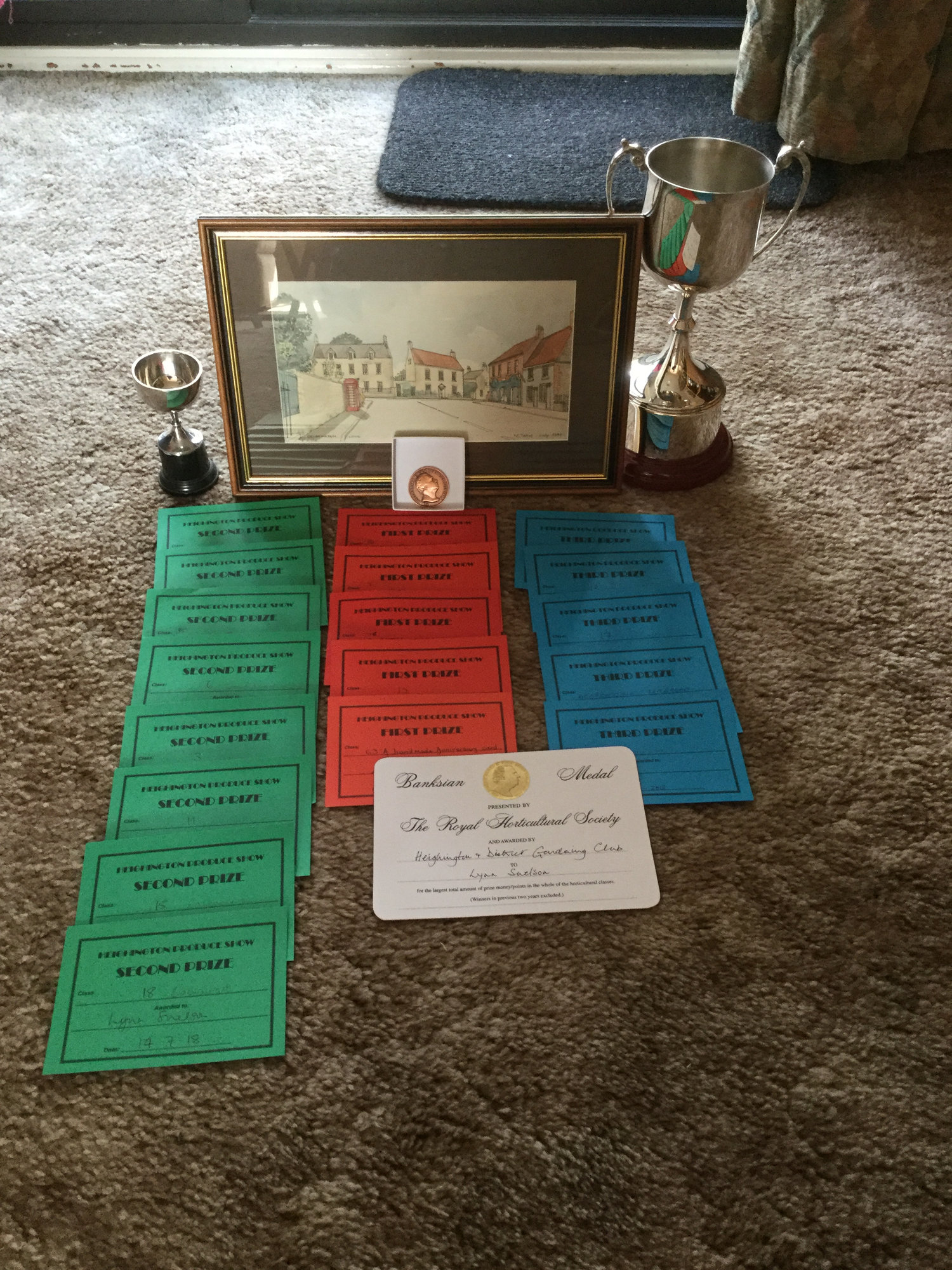Hello , Village show went well , entries down on last year for fruit & veg , to be expected during this heat wave O/H did very well and Won the RHS Banksian Medal