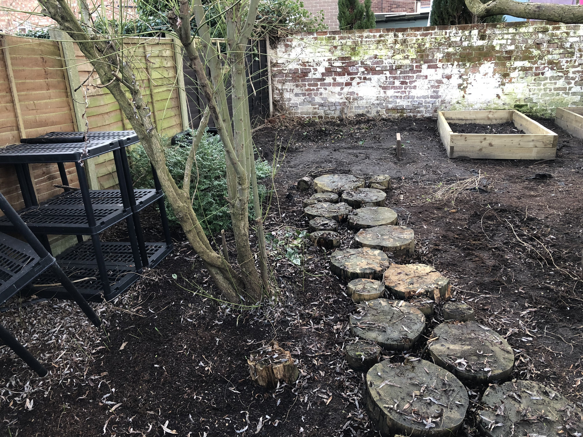 How time has flown by since I last updated this! Well, the back of the garden is going through another major change. The log path has held up really well, only this winter has the odd one really started to rot, luckily though I just had a huge conifer chopped down and so asked the guy to cut me some new logs to swap over.