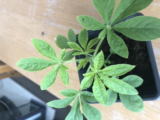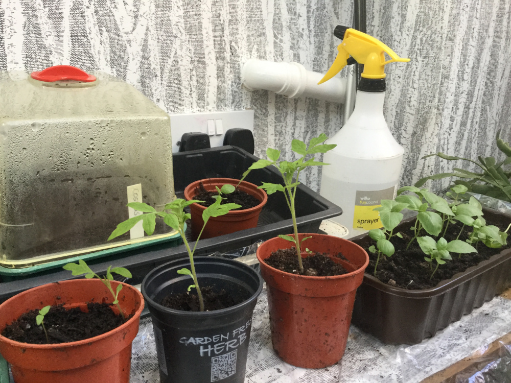 OH sowed them 26th Feb , poor germination not his favourite variety but they were 'free' he's already potted 2. On into bigger pots growing in the greenhouse seeing how they go. Here's a pic of how big they are today