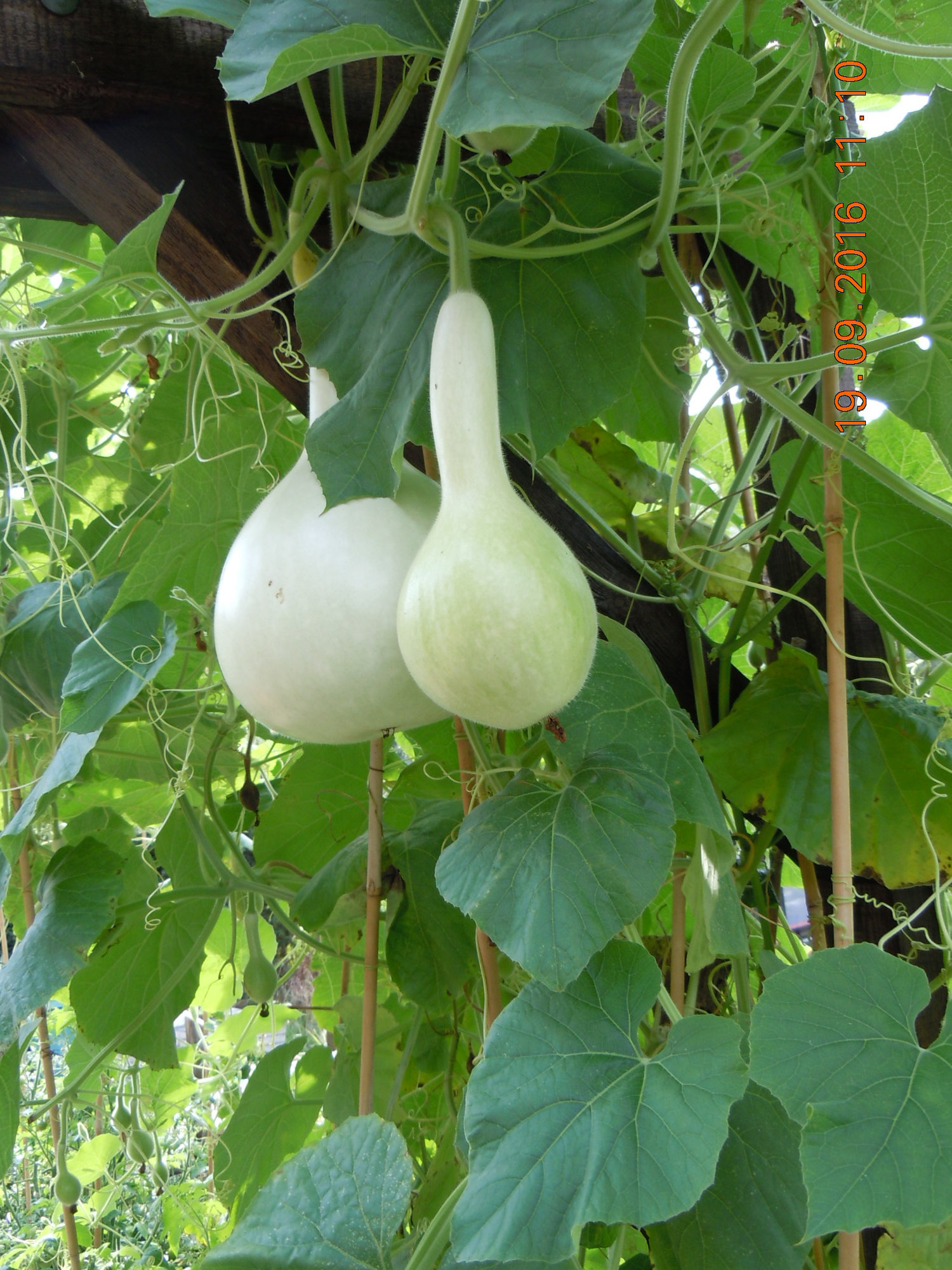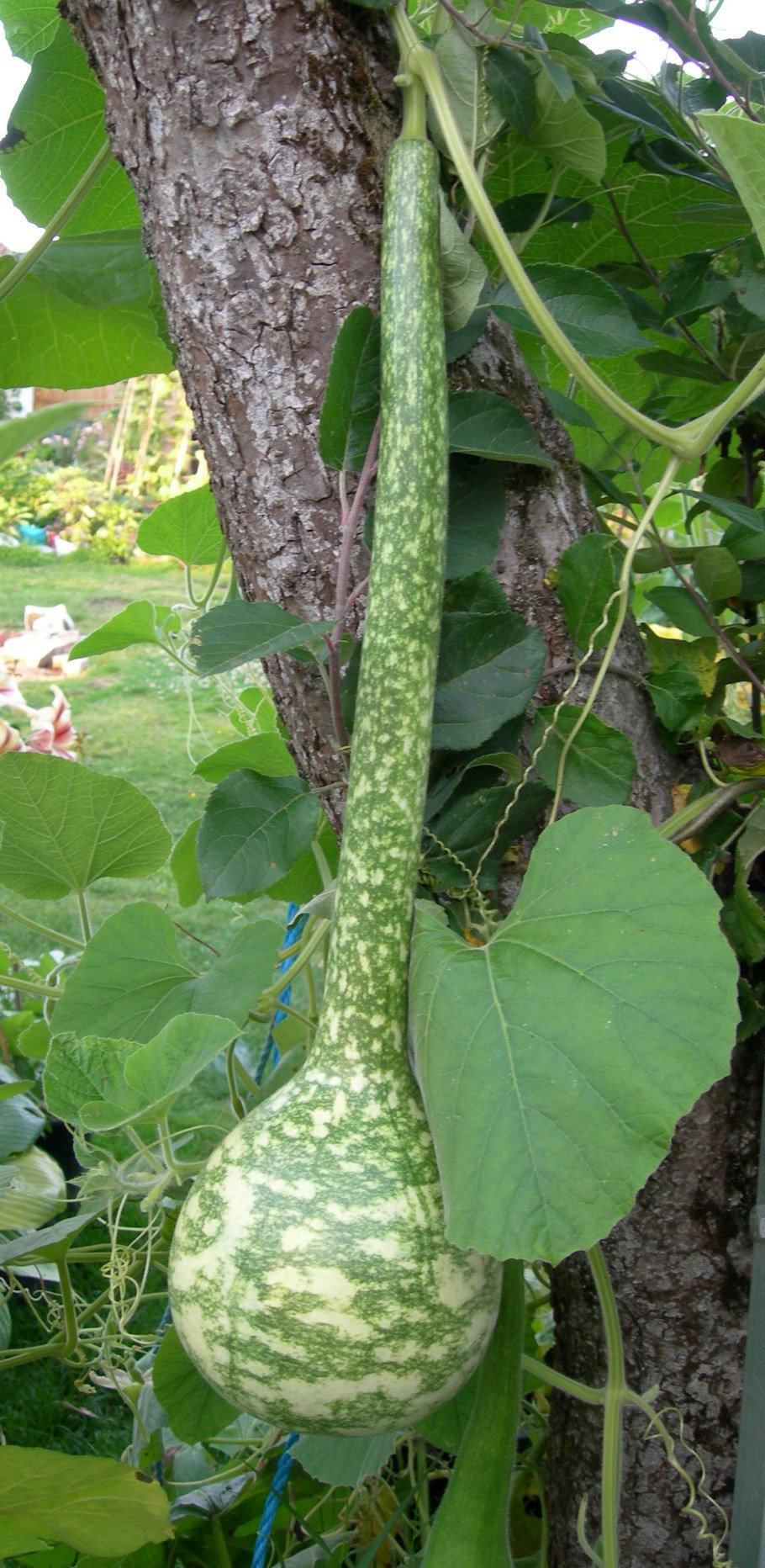 Hi Gardeninglily1, Yes, saw them on Gardeners World. Some you can eat and some you can’t. Mine are not edible and are grown in various parts of the world for various reasons, some for ornamental crafting purposes, some for making utensils and bowls and some are turned into musical instruments of various size shape and sound. Whilst in Northern India last year, my husband and I were entertained in a restaurant by musicians playing both stringed and drum instruments crafted out of gourds. Gourd crafting is big in the USA and there are many gourd societies dedicated to just that. I like art and craft and intend to do more adventurous crafting with my gourd harvests in the future. Sadly not all gourds make it through the curing process and rot out. These I quickly discard to prevent the rot spreading. My gourds have thrived in the heat wave we have experienced here in the UK this year and by far this is will be my best harvest so far. My biggest gourd this year is a ‘Dipper Gourd’ and it is about a yard long and weighs several kilos and for this reason it will take a year or more to cure. Gourds have a tendency to cross pollinate very easily so I don’t save the seeds from my harvest. I prefer to buy new seed each year from various suppliers. I have searched for other gourd growers/enthusiasts in the UK to exchange thoughts and ideas but sadly they are thin on the ground. Maybe this post will bring some out of the woodwork.