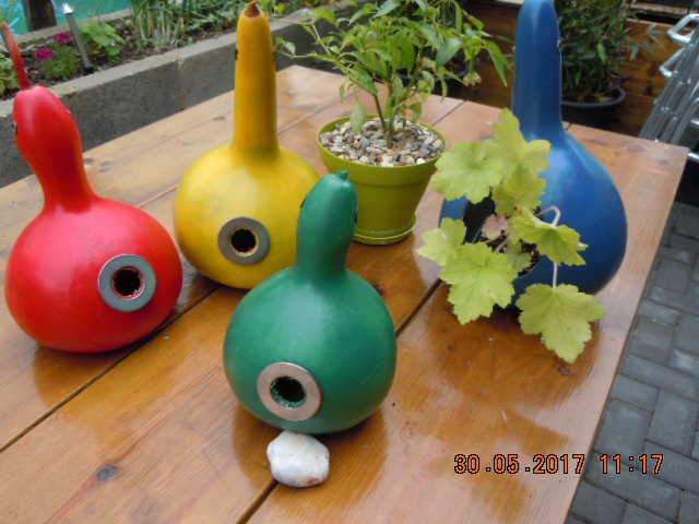 bold coloured tit boxes were crafted in 2017 from my harvest the previous year.