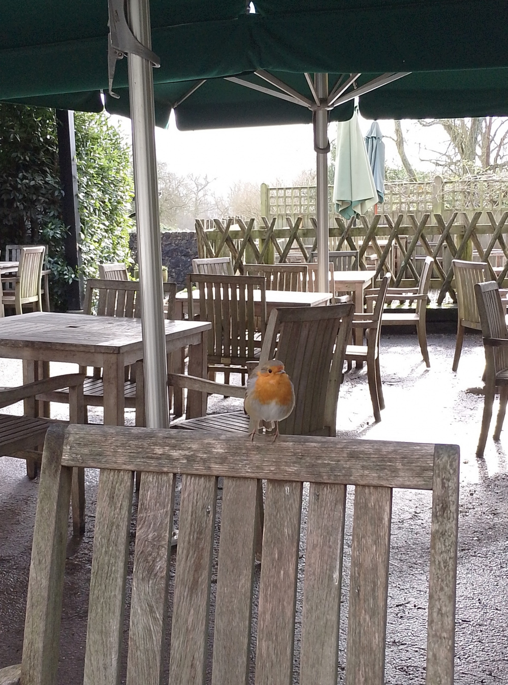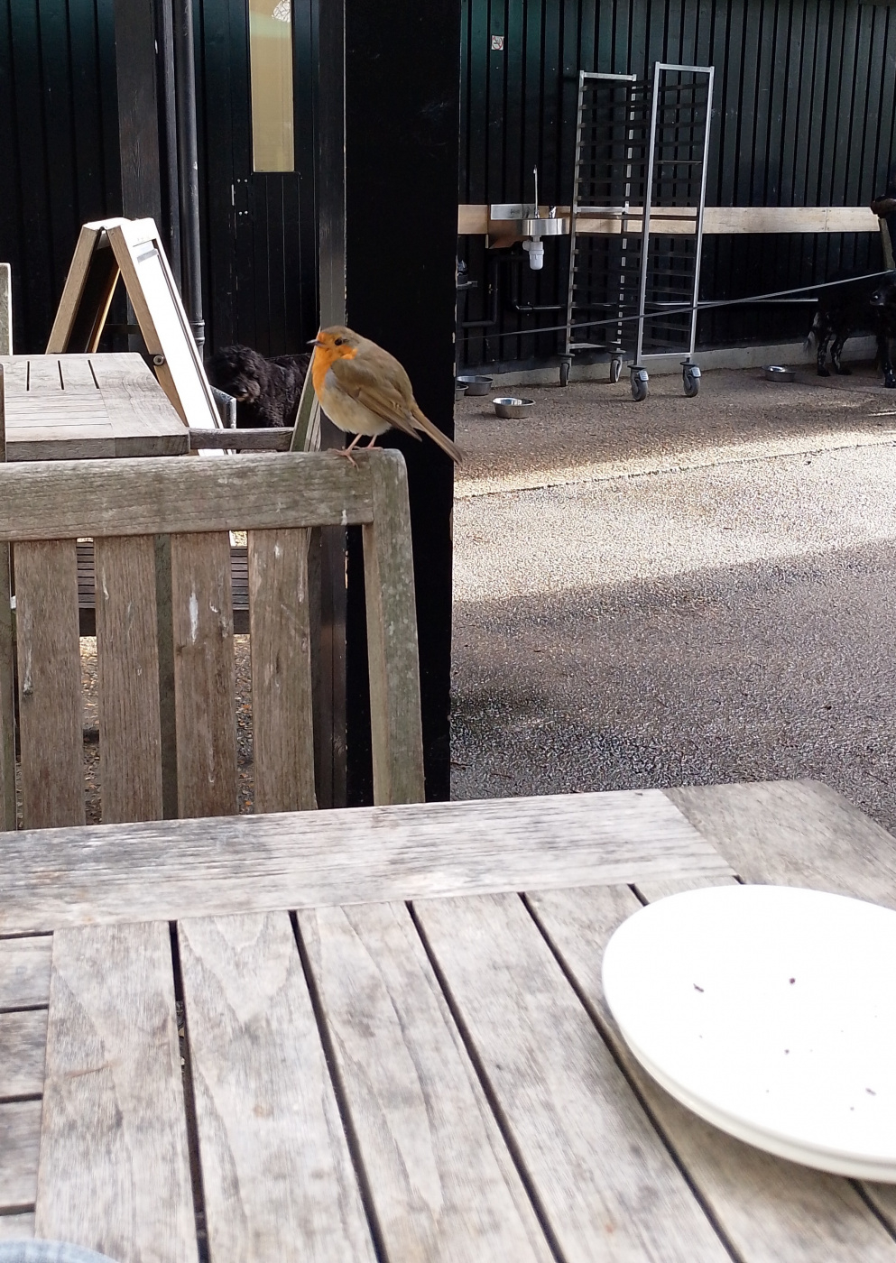 I just remembered that I was sitting on the bench having a cuppa one day, when a sparrowhawk [probably the same one] flew in through the gap on the boundary, passed between me and the washing - easily within arms' reach of me, circled back round and flew away again. One of those 'blink and you miss it' moments!