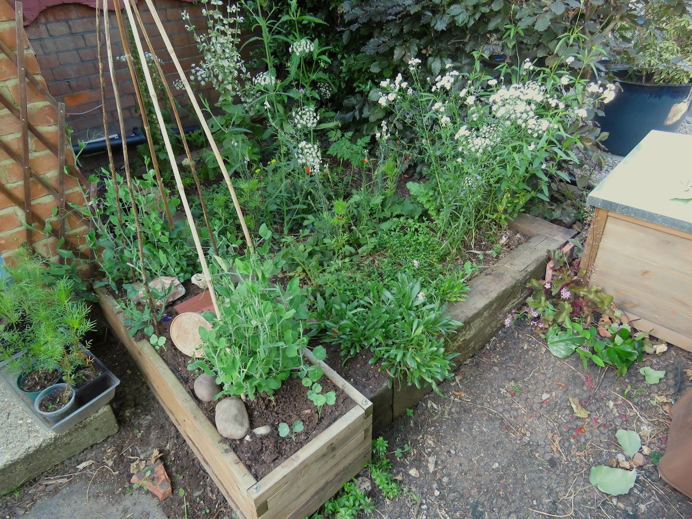 Thanks to all for the advice on putting a raised bed in my front garden. It went in last autumn and by the way of update, I thought I'd add some photos. I added a little box next to the bed (with sweetpeas) to try and make best use of the small space. The blue pot is in the next garden.